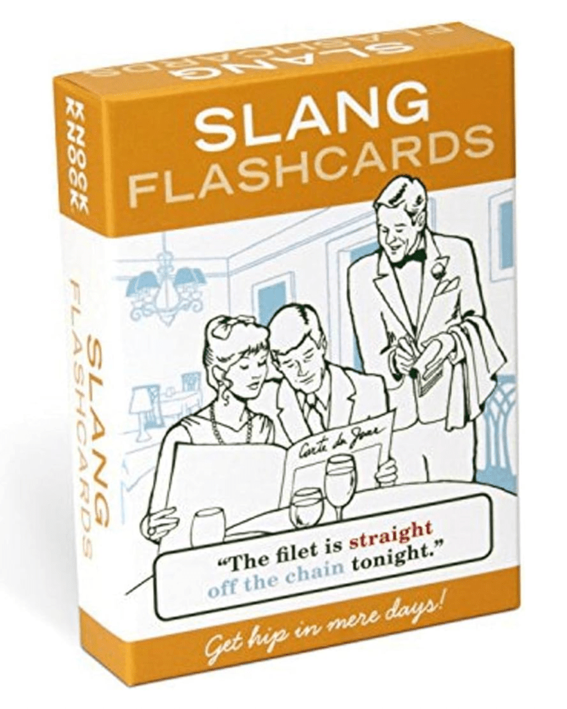 One day while shopping at the Lynnwood [Washington State] Container Store, I spotted a novelty item near the register—the kind meant for impulse buys: Knock Knock Slang Flashcards.